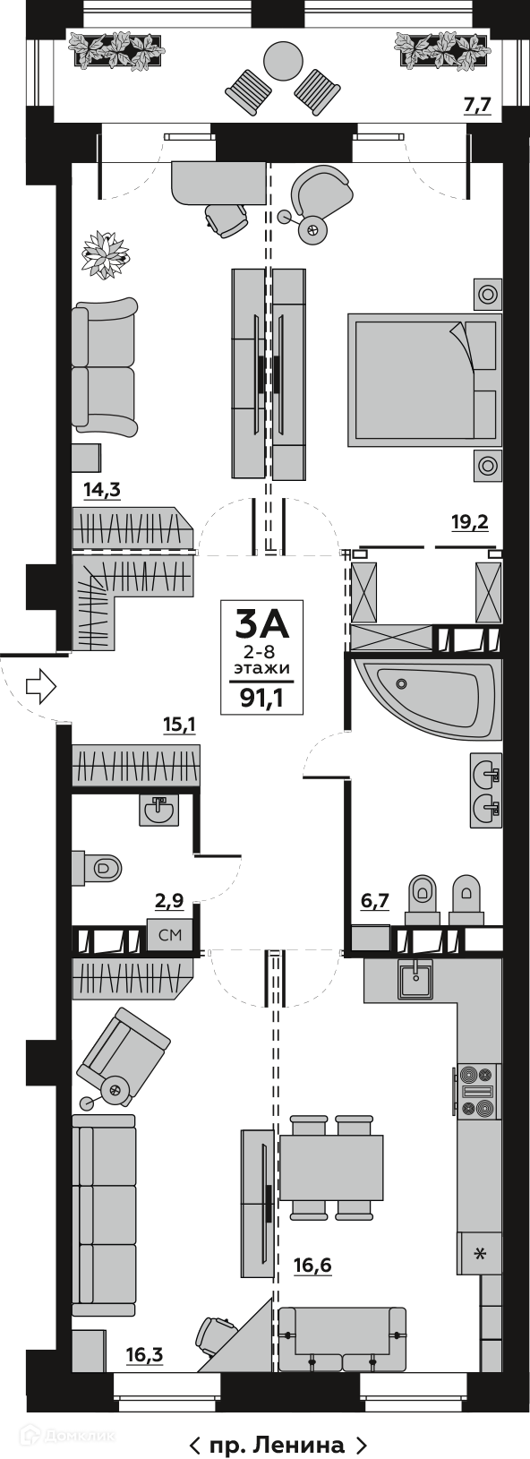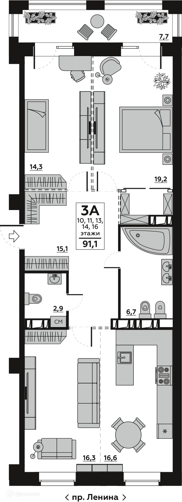 - ✅ Кухня: 16.62 м² — эргономичное пространство.