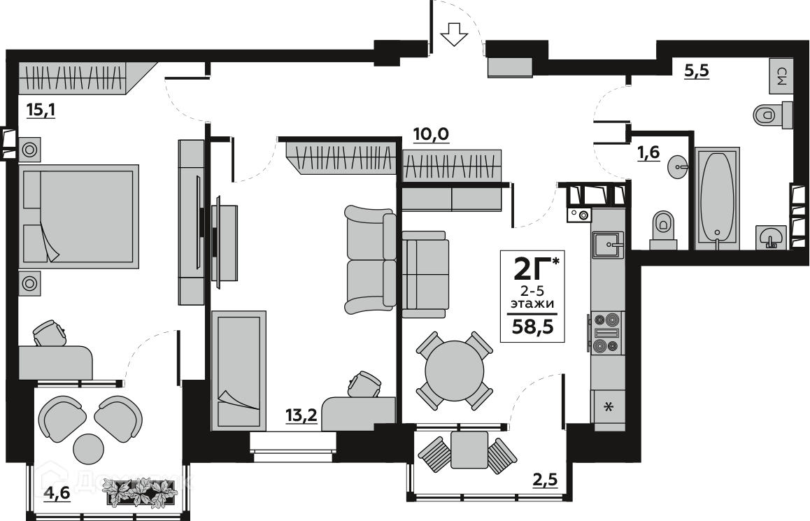 Планировка 2 комн. в ЖК "Лапшин Loft (Лапшин Лофт)"