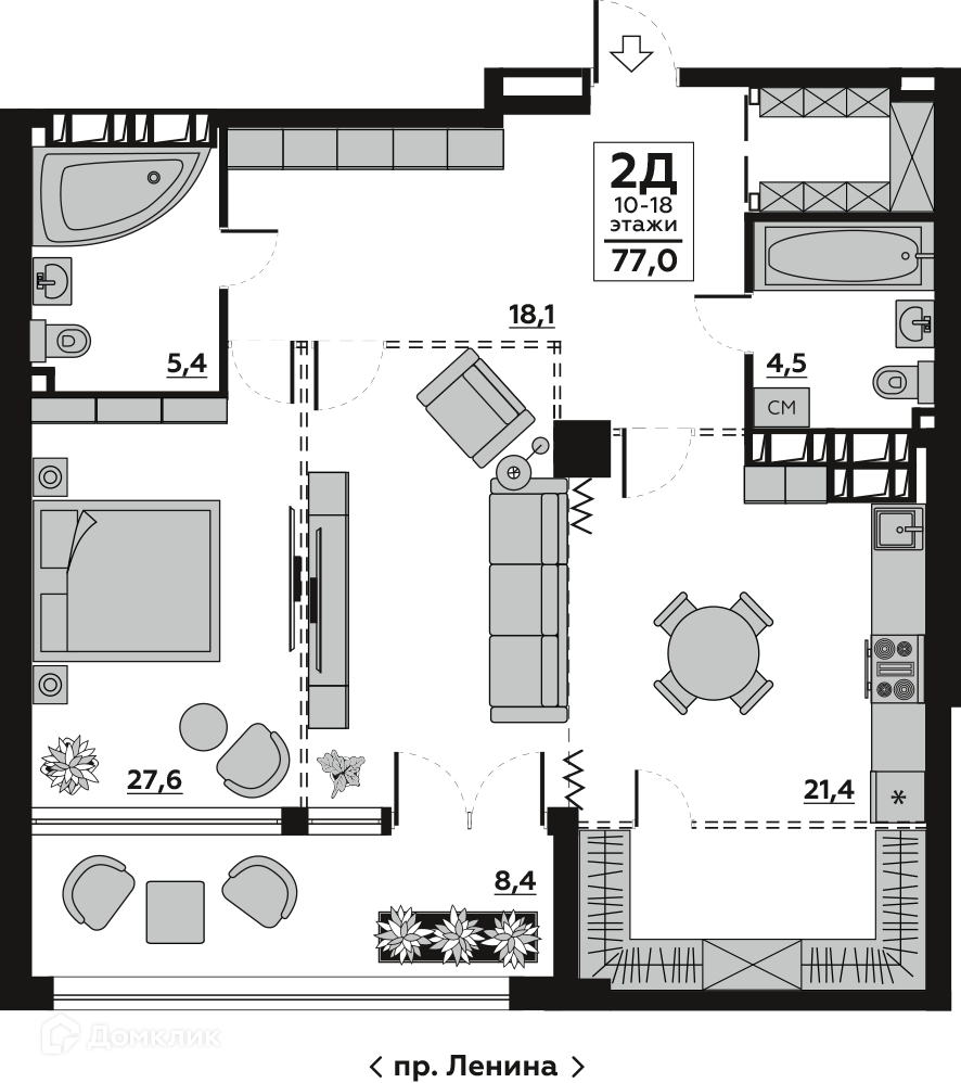 - Жилая площадь: 27.5 м²