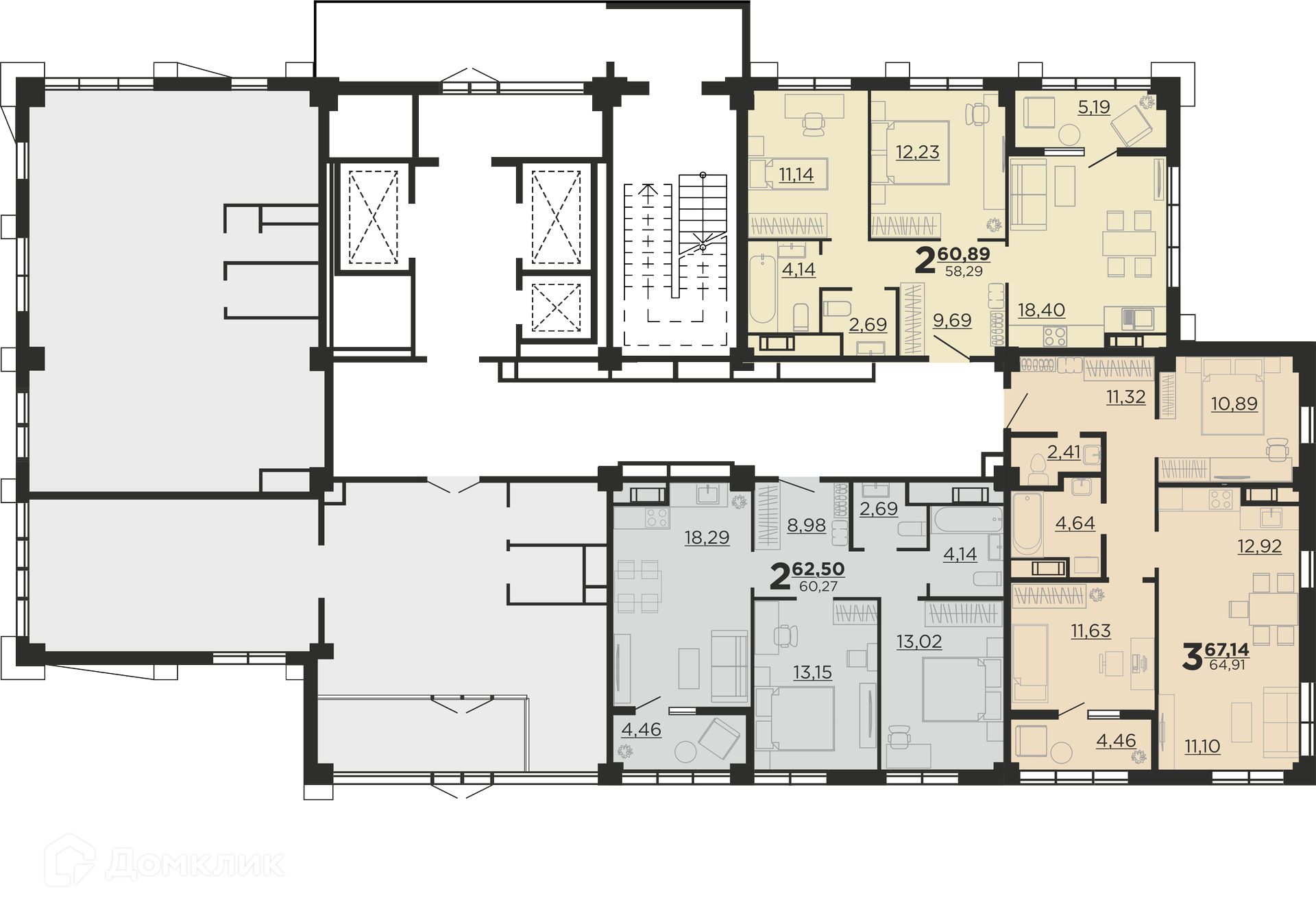 Площади квартир