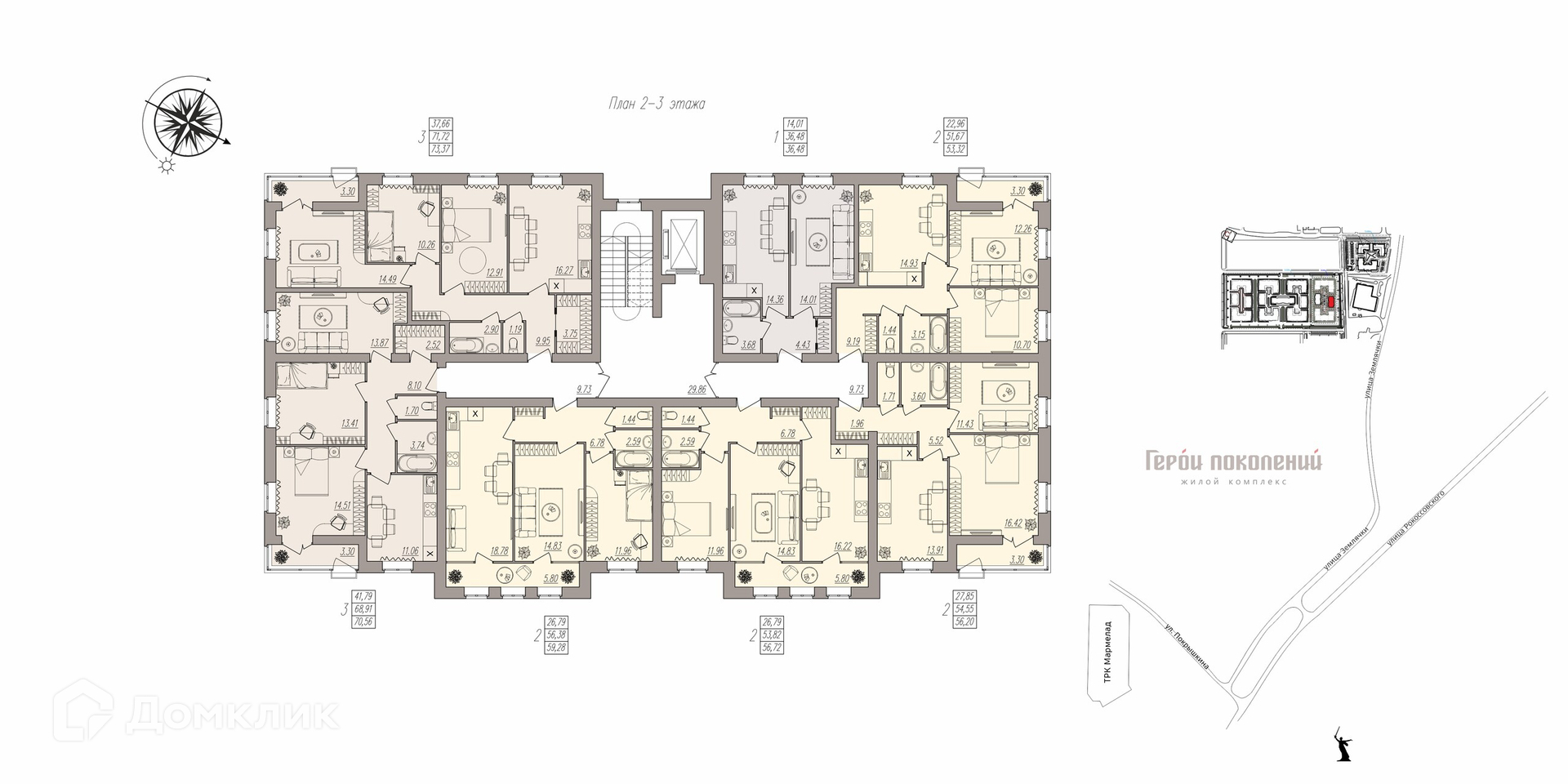 Площади квартир