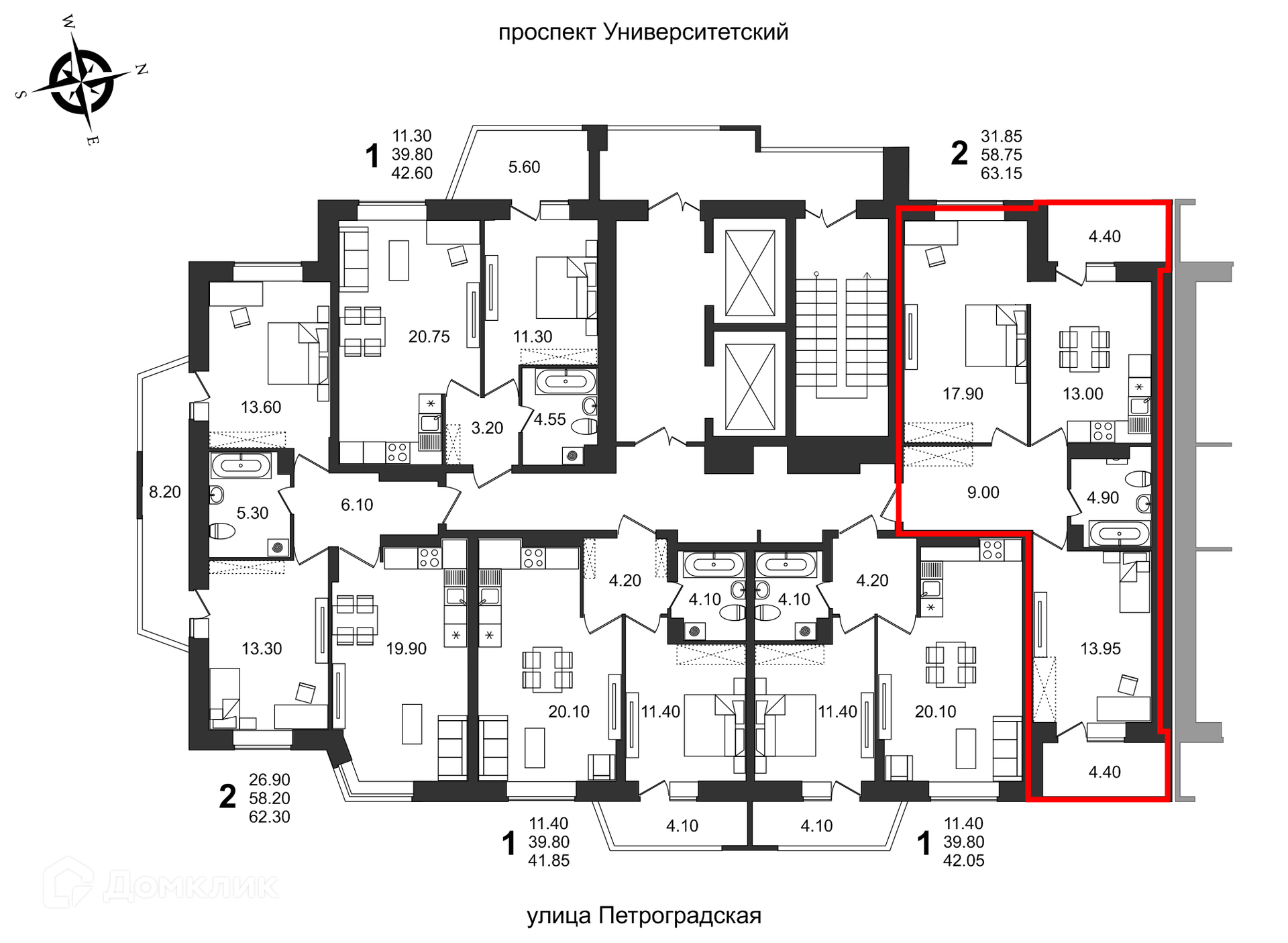 Площади квартир