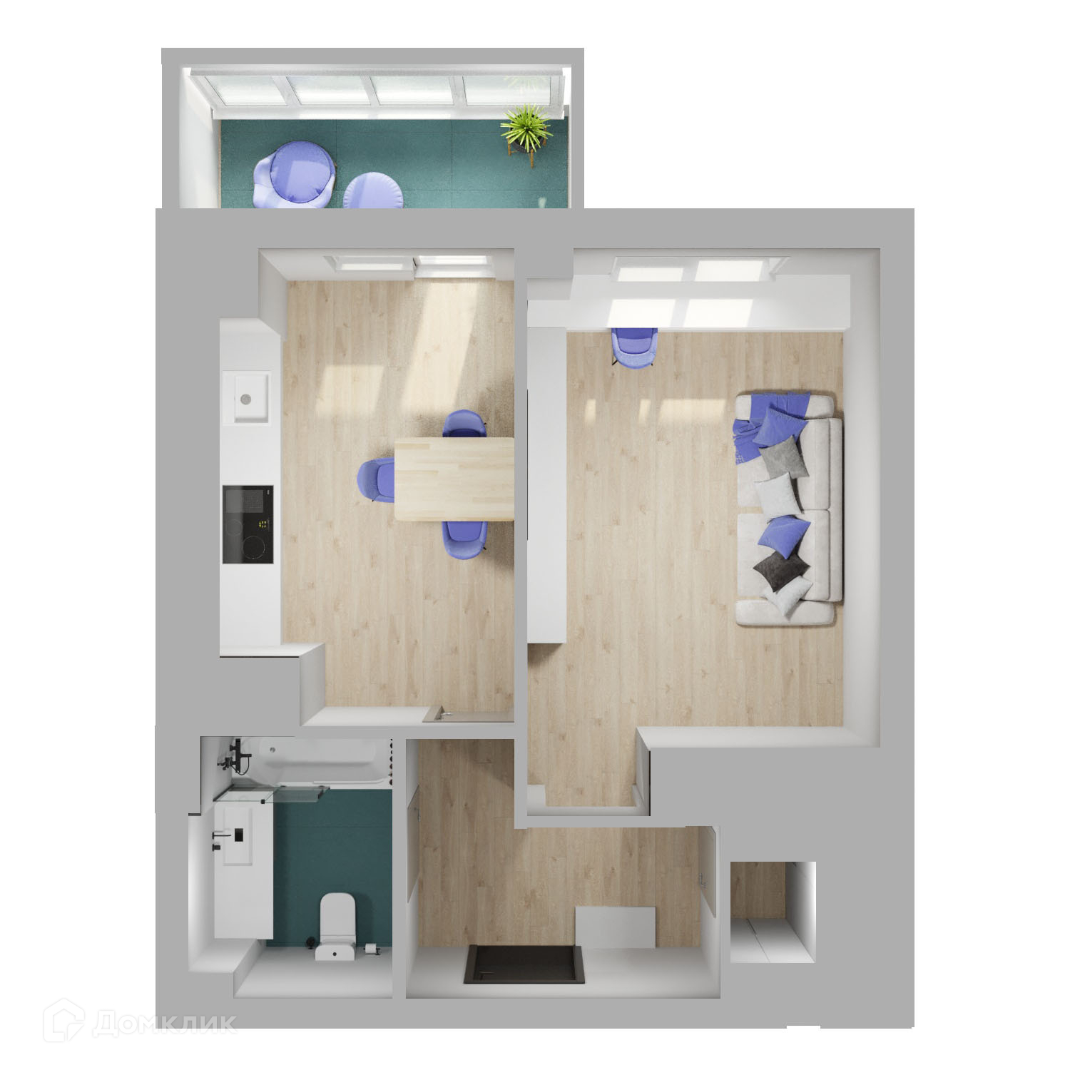 - Общая площадь: 42.6 м²