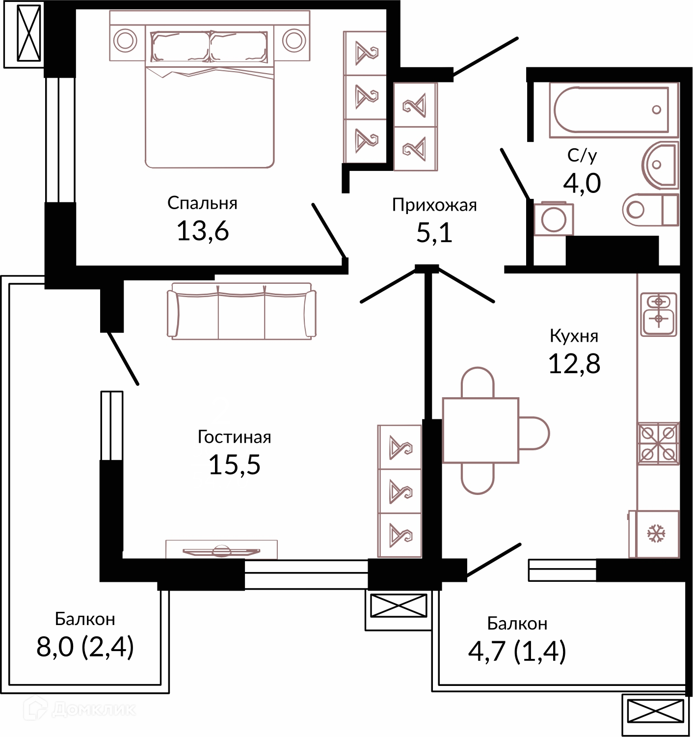 Площади квартир