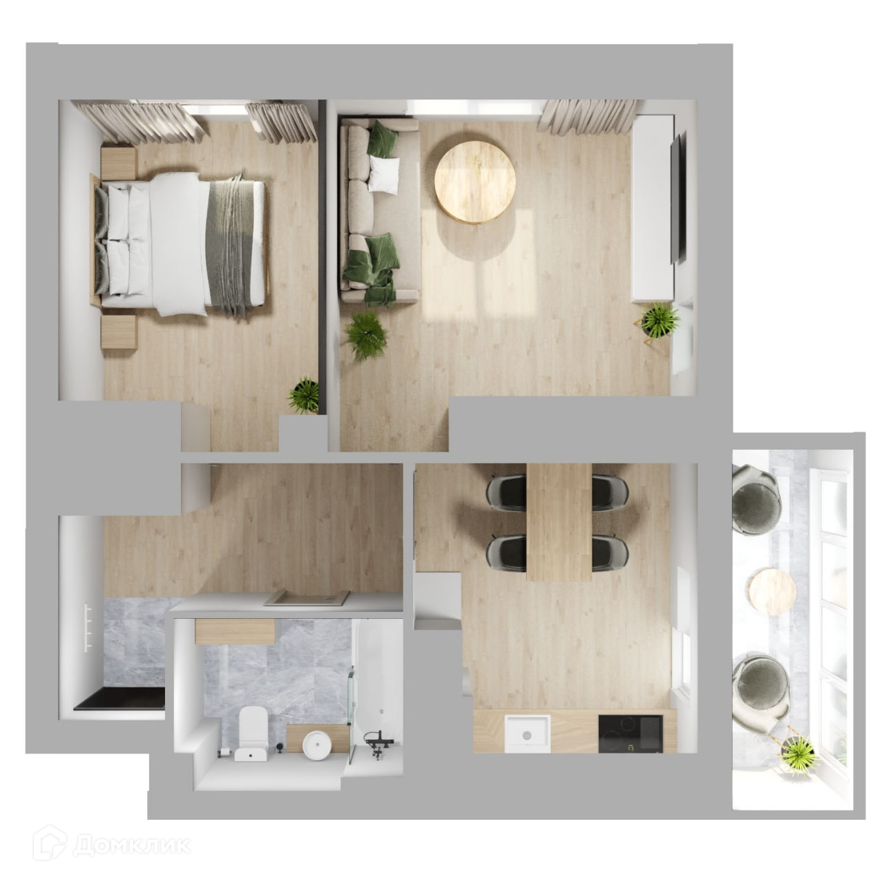 - 🌞 Большие окна наполняют помещения природным светом.