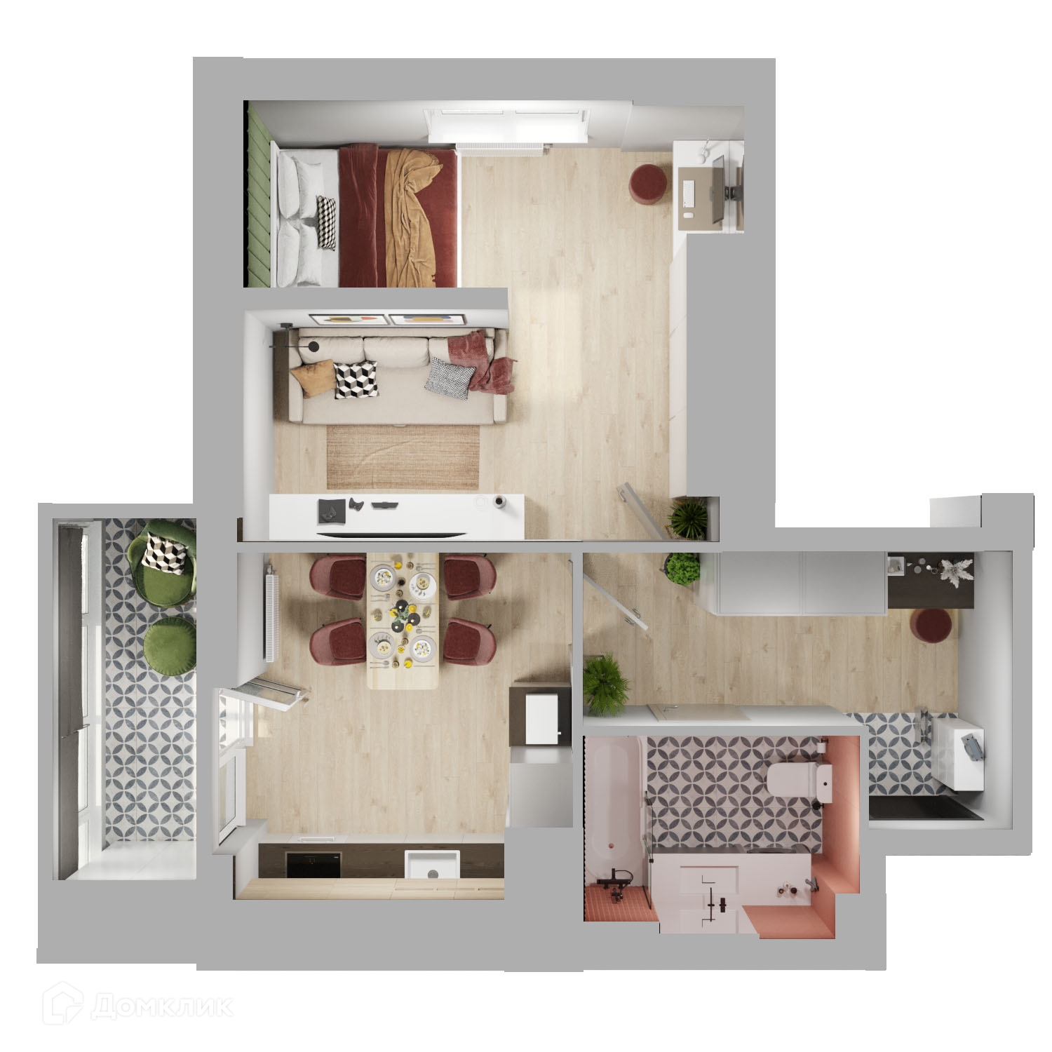 - Общая площадь: 45.9 м²