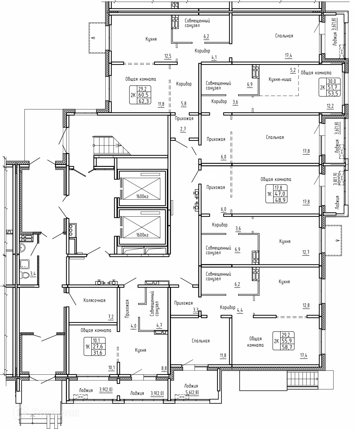 Площади квартир