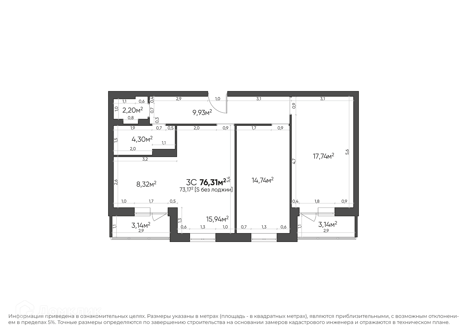 Площади квартир