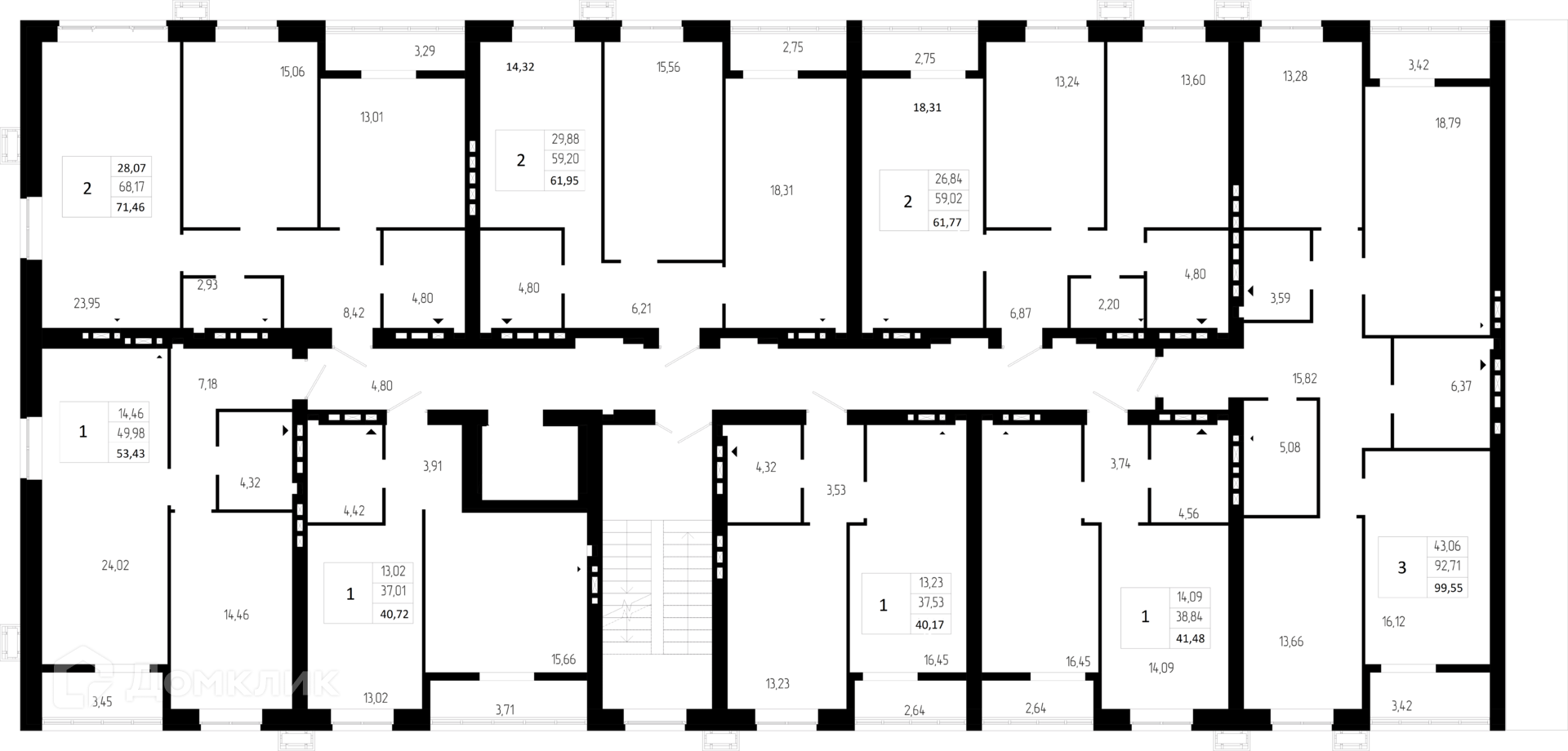 Площади квартир