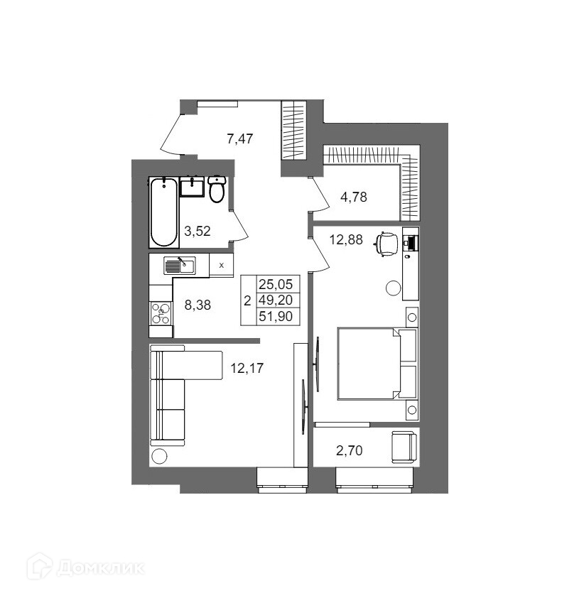 Предлагается 2-комнатная квартира в востребованном жилом комплексе "ЖК Клубный дом на Жукова" 🏢. Квартира расположена на 4-м этаже 11-этажного дома. Прекрасный выбор для инвестиций.