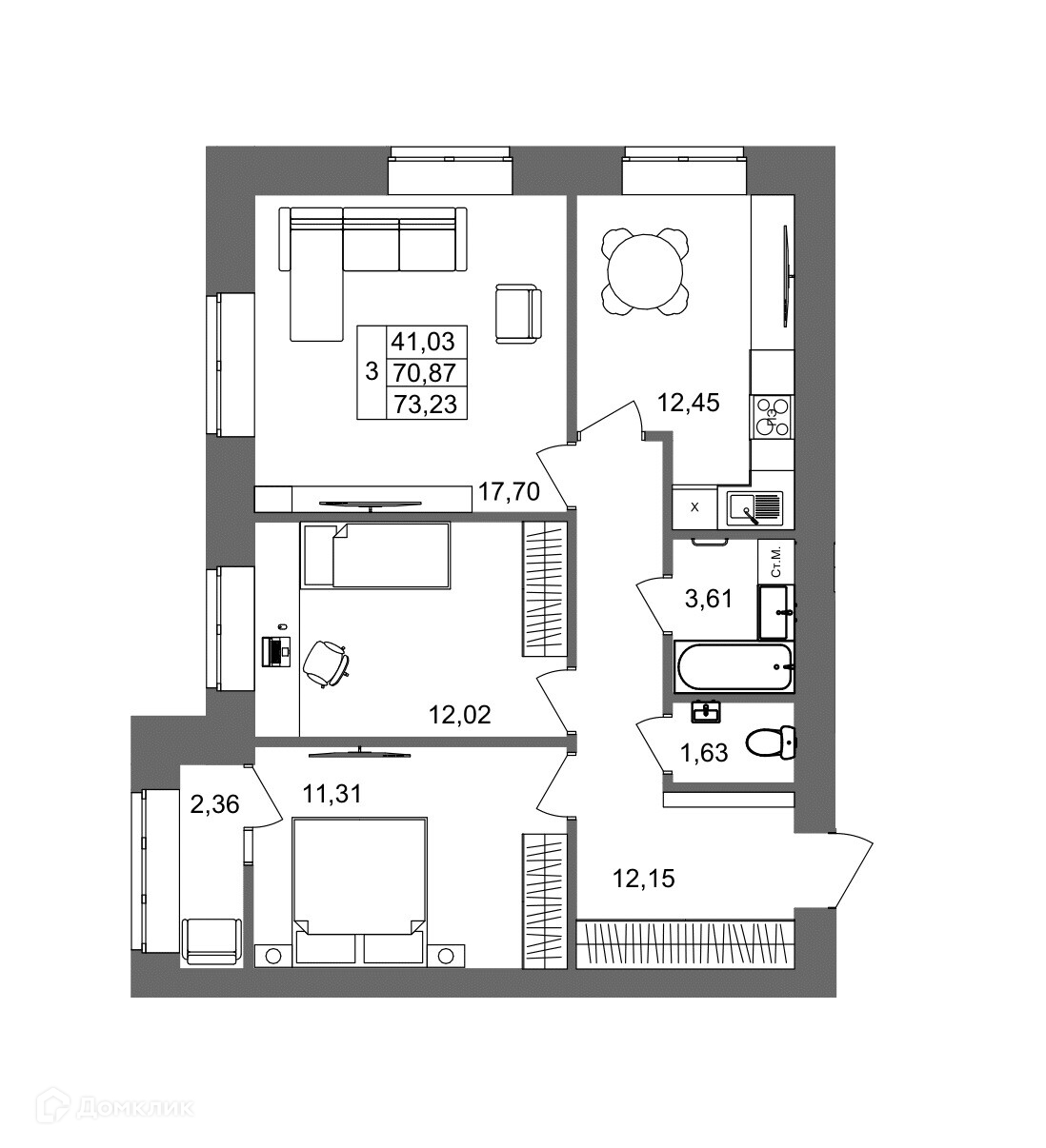 • Площадь - 73.23 м²