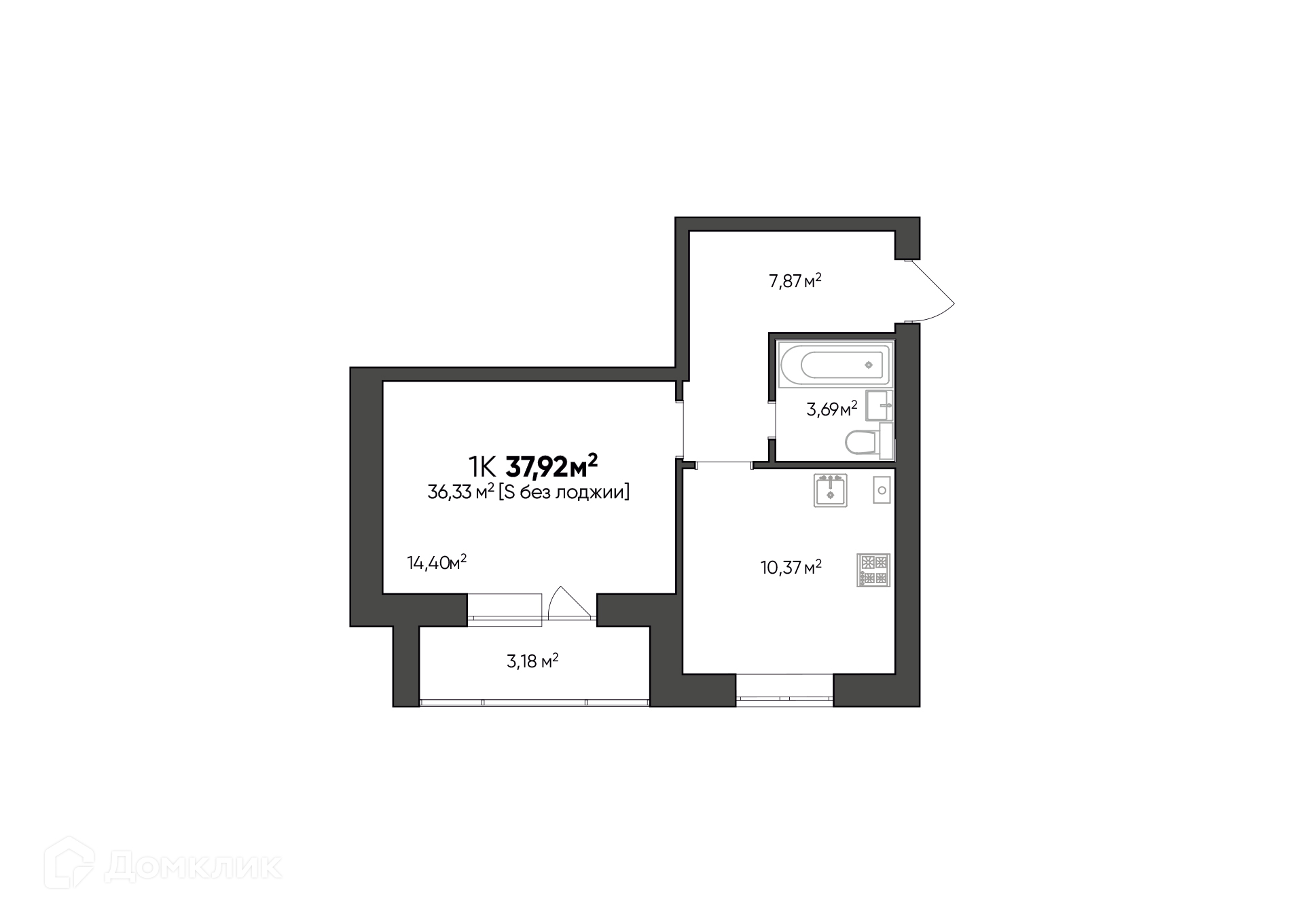 Планировка 1 комн. в ЖК Заволжье