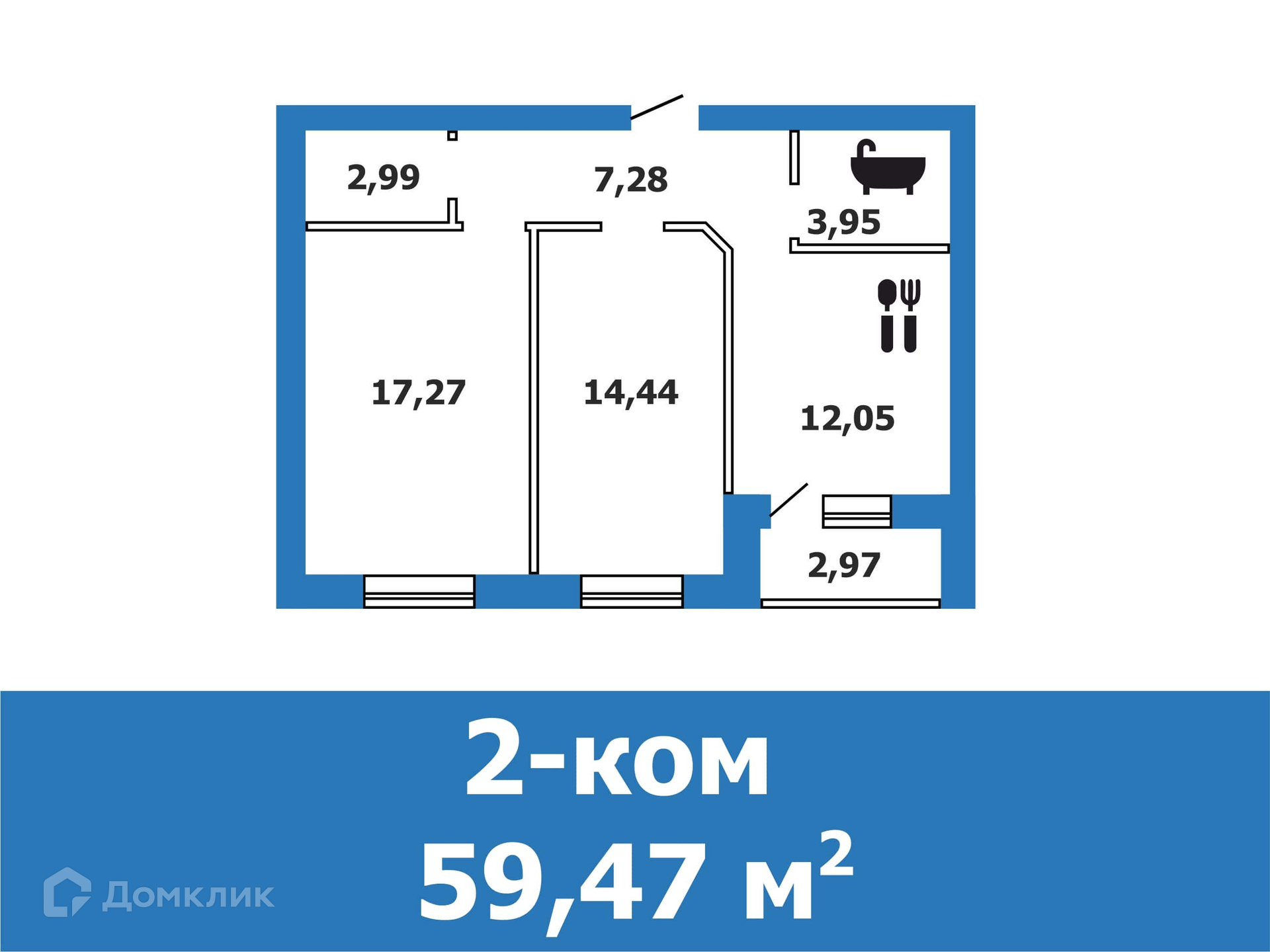 - Общая площадь: 59.47 м²