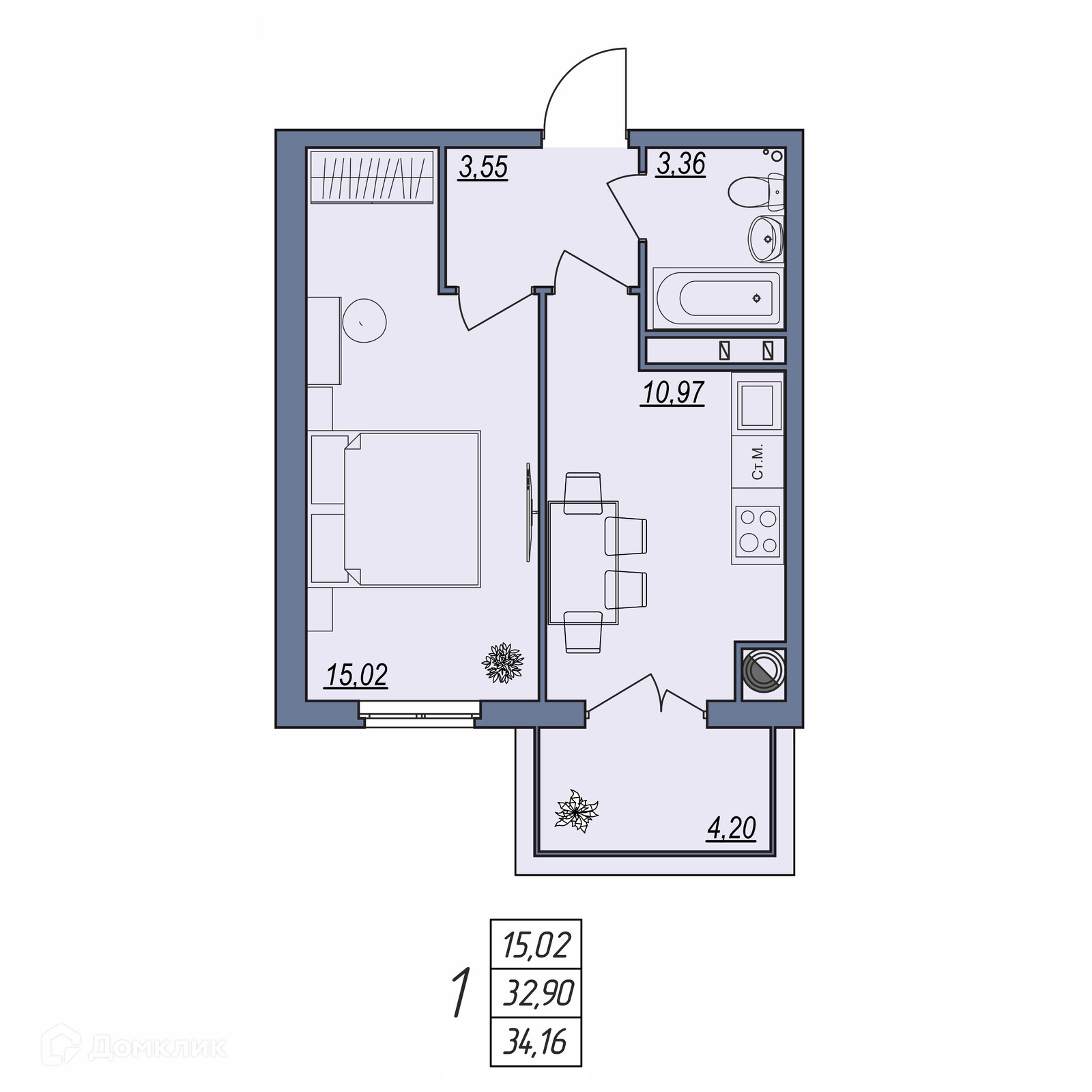 ✅ Кухня: 10.97 м² — место для кулинарных шедевров.