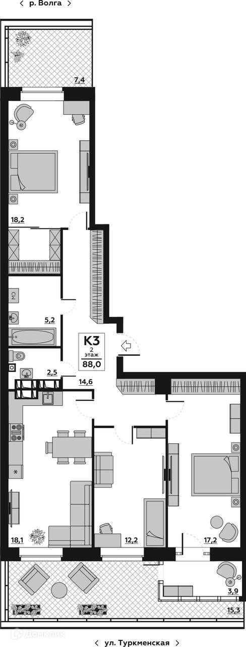 Доступна к покупке 3-комнатная квартира в современном жилом комплексе "ЖК Волго-Дон" 🏢. Квартира расположена на 2-м этаже 21-этажного дома. Прекрасный выбор для инвестиций.