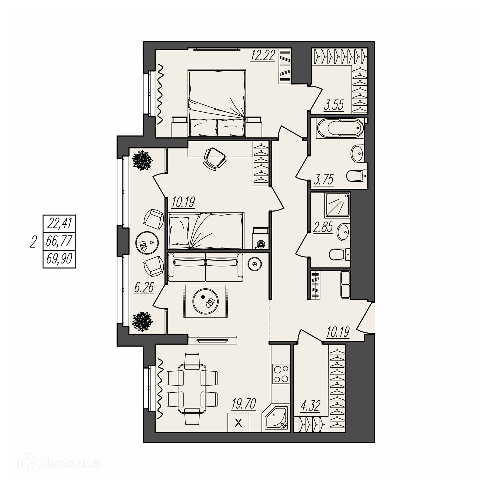 Площади квартир