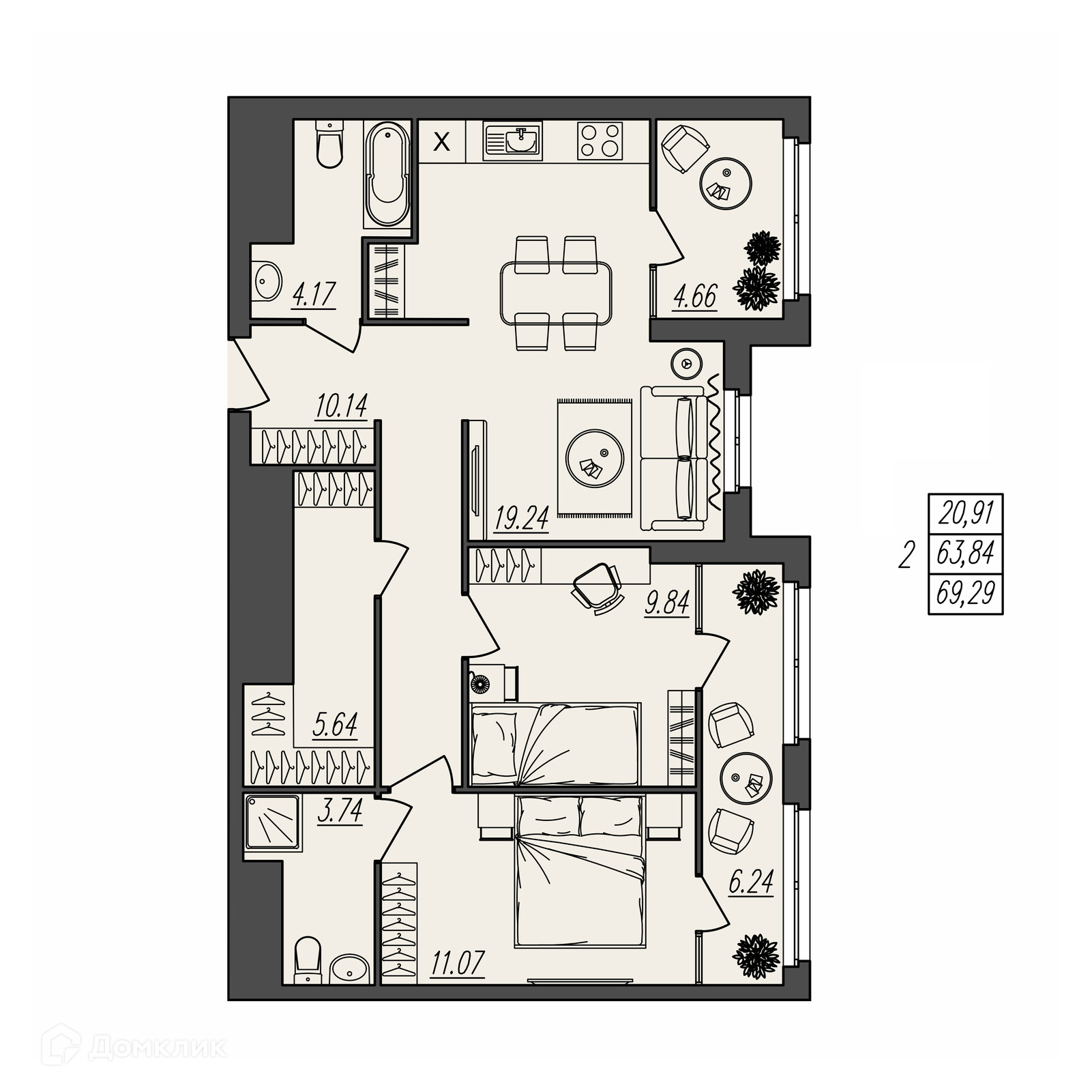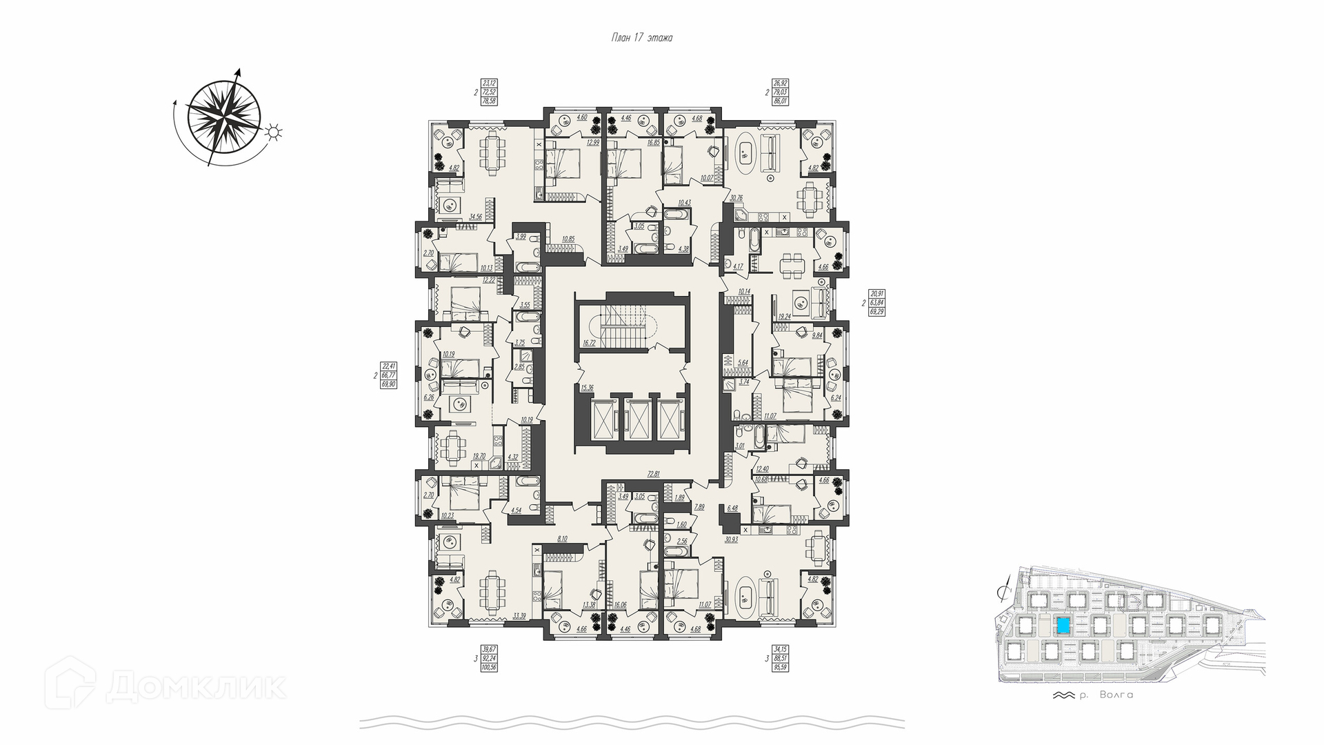 Площади квартир