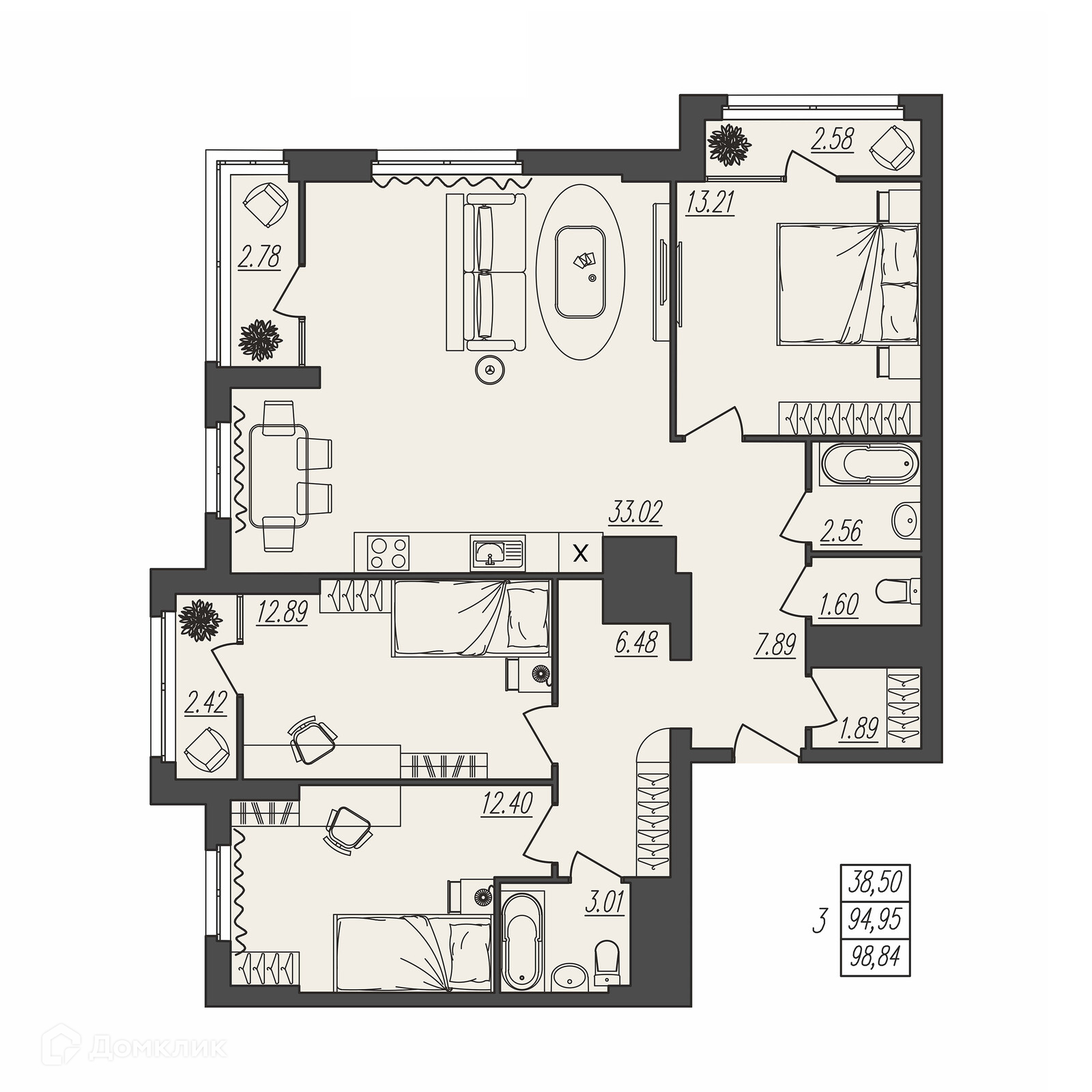 Площади квартир