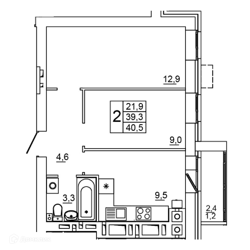 ✅ Кухня: 9.5 м² — эргономичное пространство.