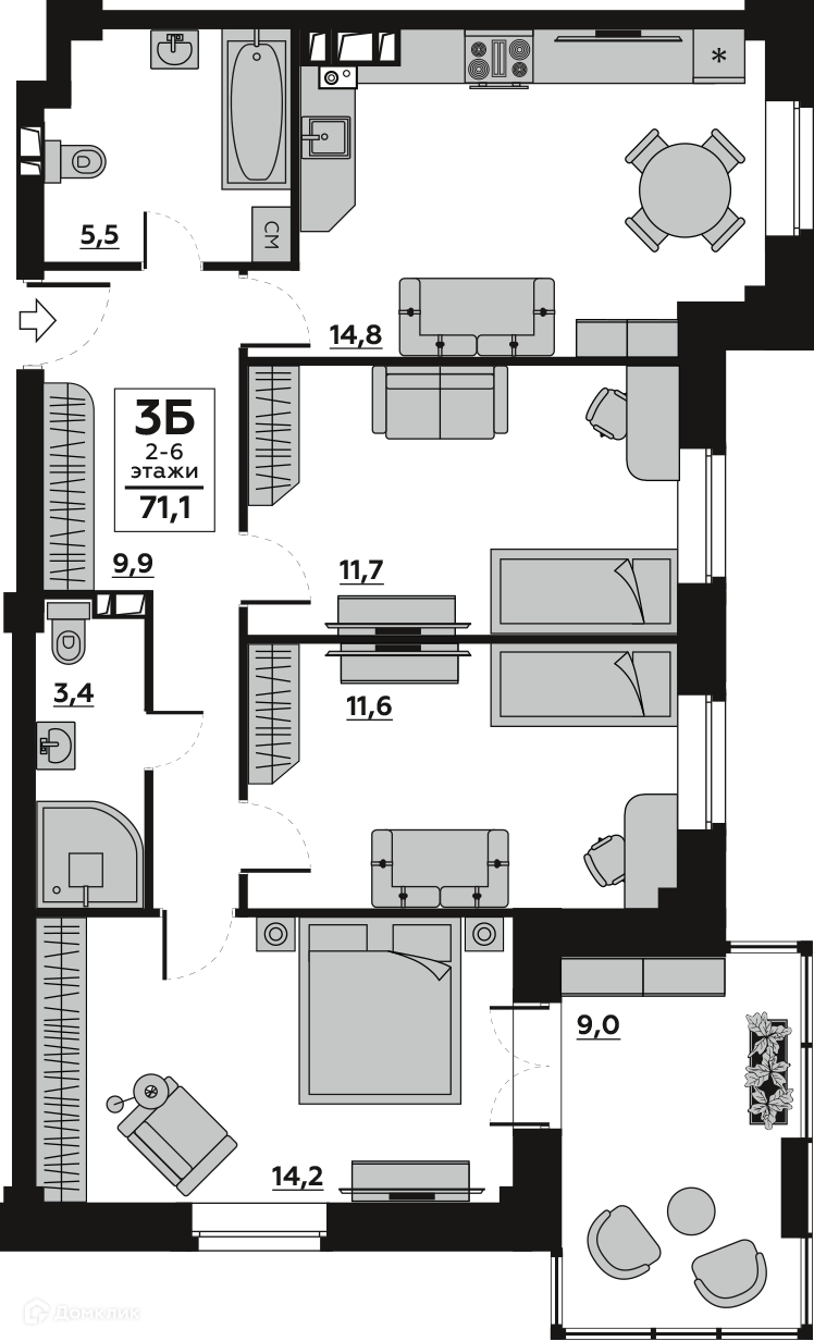 В продаже 3-комнатная квартира в современном жилом комплексе "ЖК "Лапшин Loft (Лапшин Лофт)"" 🏢. Квартира расположена на 6-м этаже 7-этажного дома. Прекрасный выбор для инвестиций.