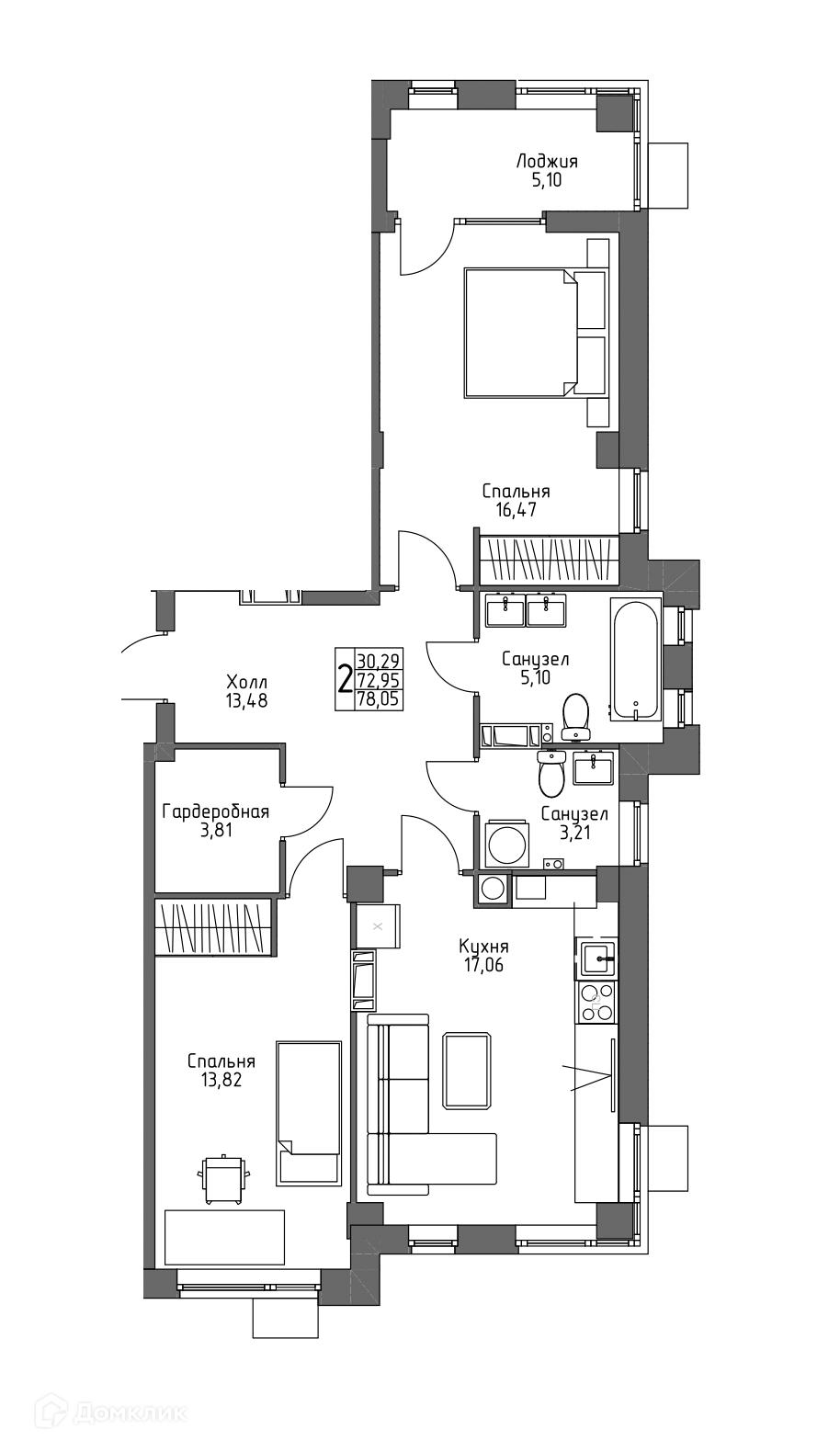 Площади квартир