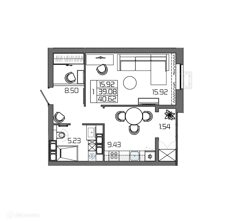 - ✅ Кухня: 9.43 м² — место для кулинарных шедевров.