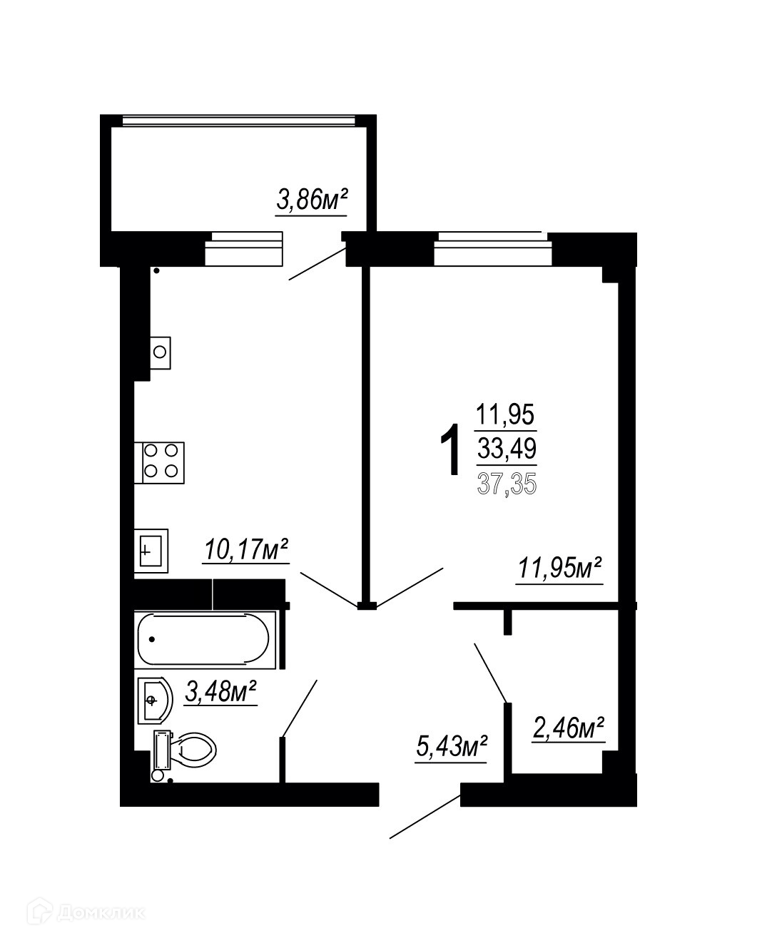 Планировка 1 комн. в ЖК по улице Полины Осипенко