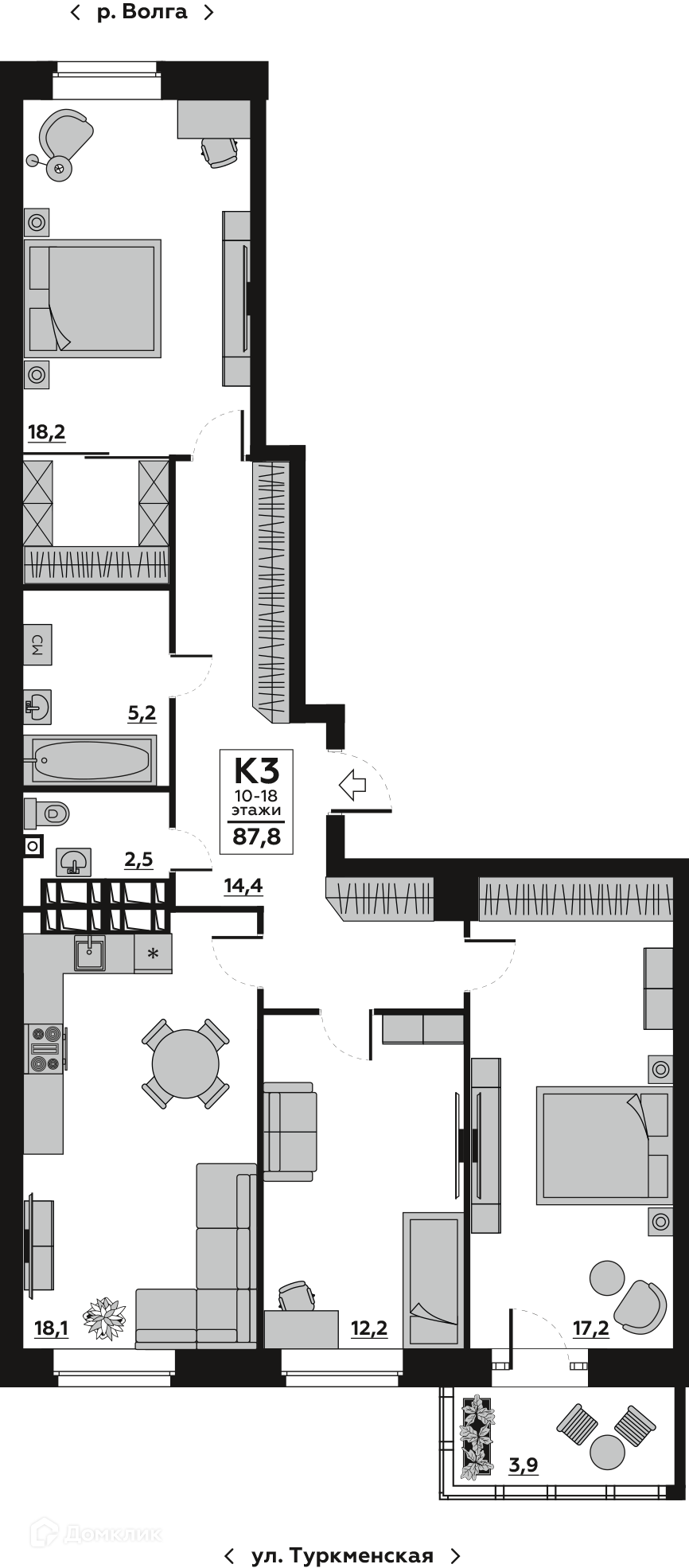 В продаже 3-комнатная квартира в современном жилом комплексе "ЖК Волго-Дон" 🏢. Квартира расположена на 14-м этаже 21-этажного дома. Отличный вариант для комфортной жизни.