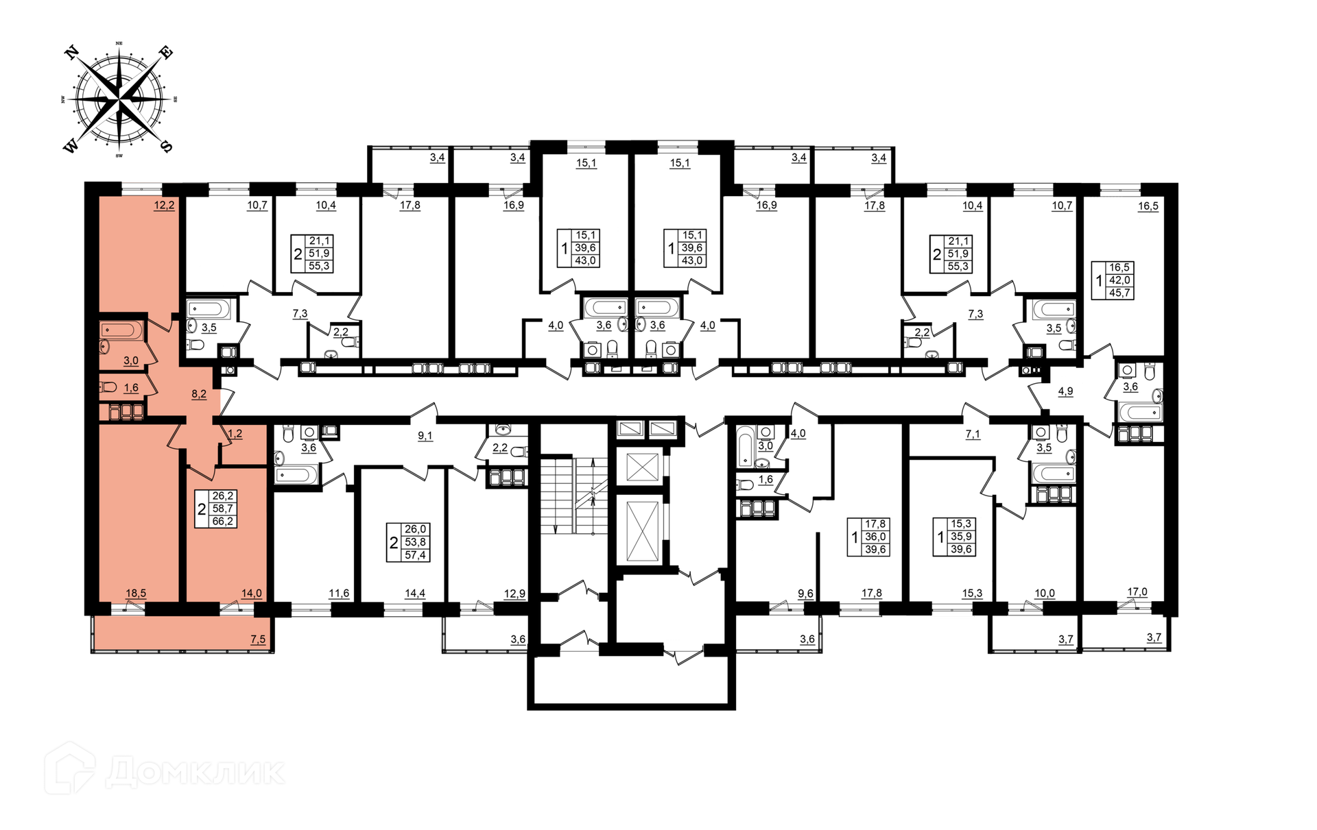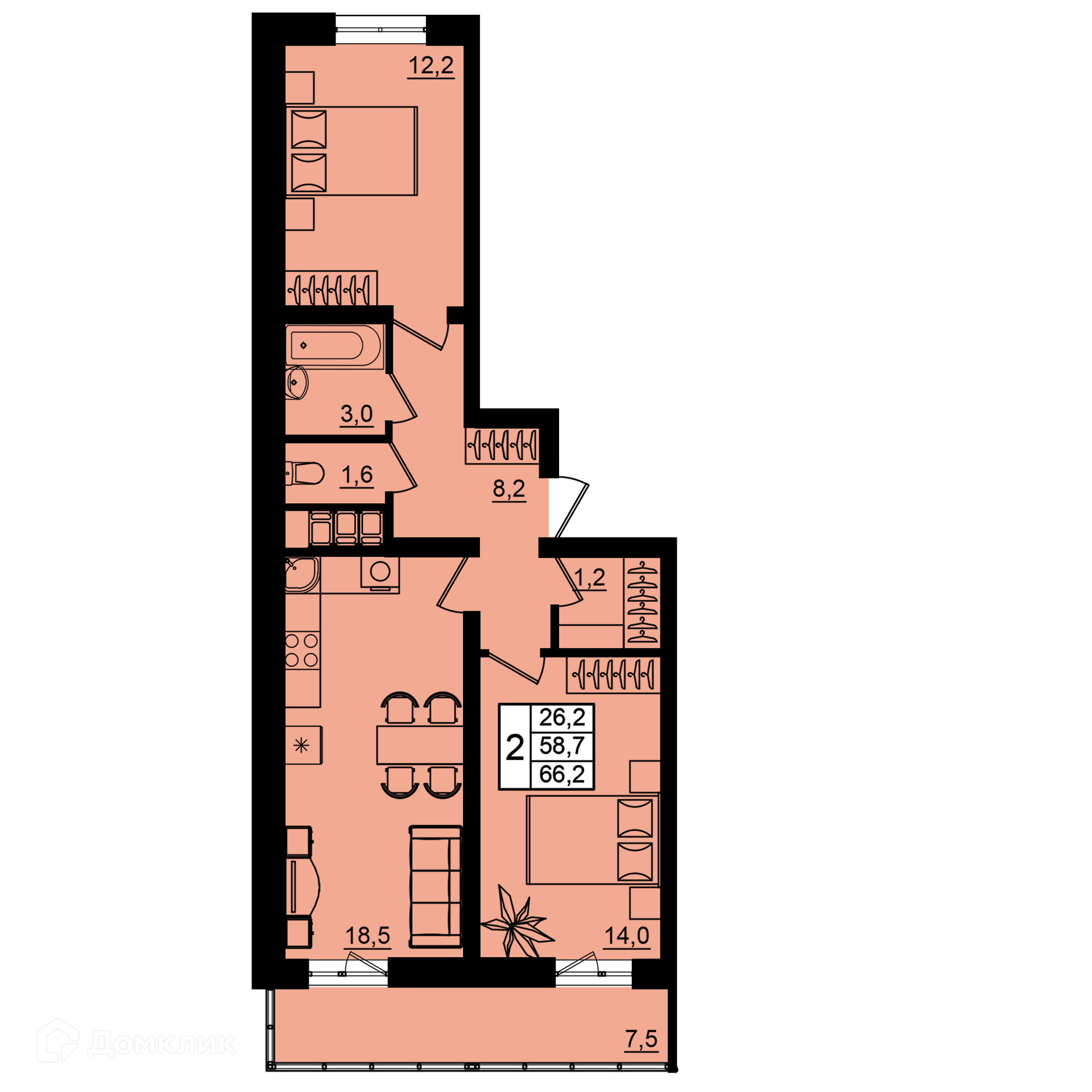 - Общая площадь: 66.2 м²