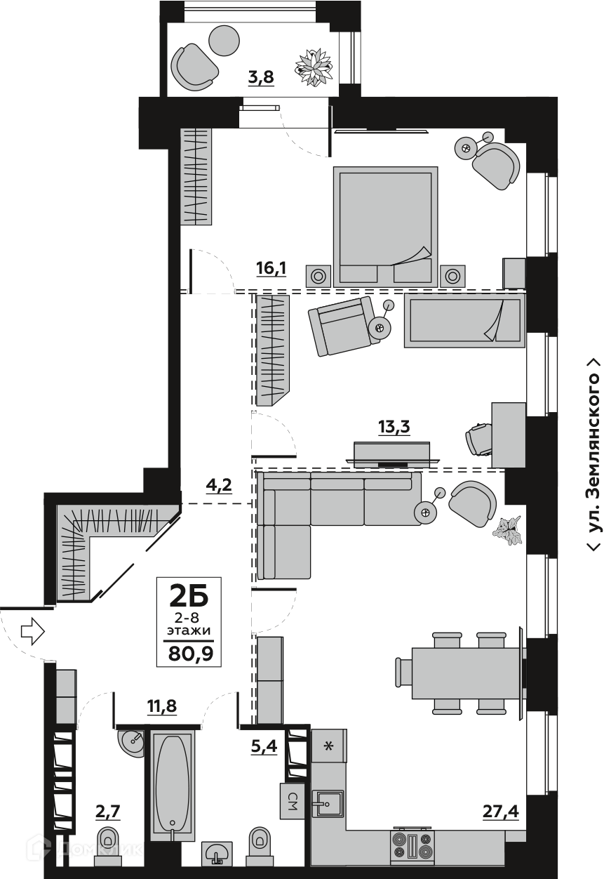 - ✅ Кухня: 27.42 м² — место для кулинарных шедевров.