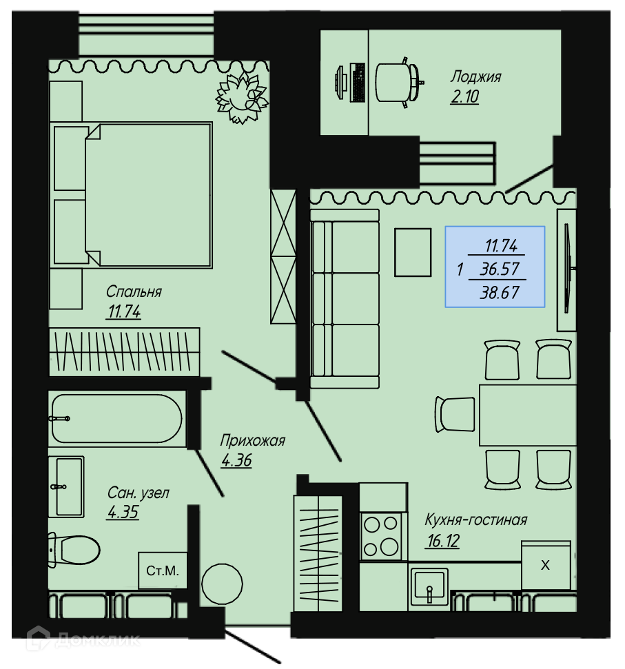 Доступна к покупке 1-комнатная квартира в востребованном жилом комплексе "ЖК Клевер" 🏢. Квартира расположена на 14-м этаже 18-этажного дома. Отличный вариант для семьи.