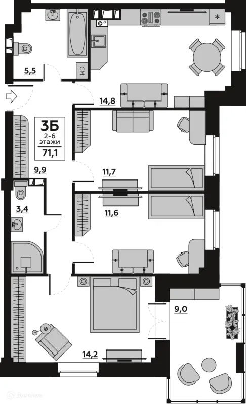 3 комн. квартира в Волгограде в ипотеку от 73 450 руб/месяц