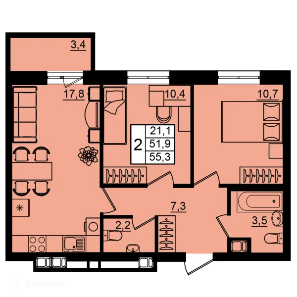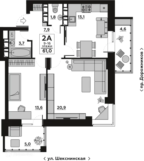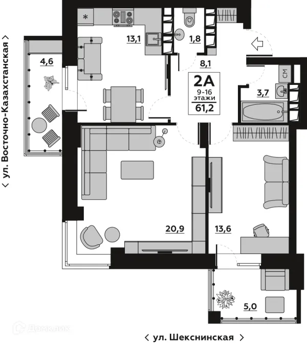 2 комн. квартира в Волгограде в ипотеку от 43 861 руб/месяц