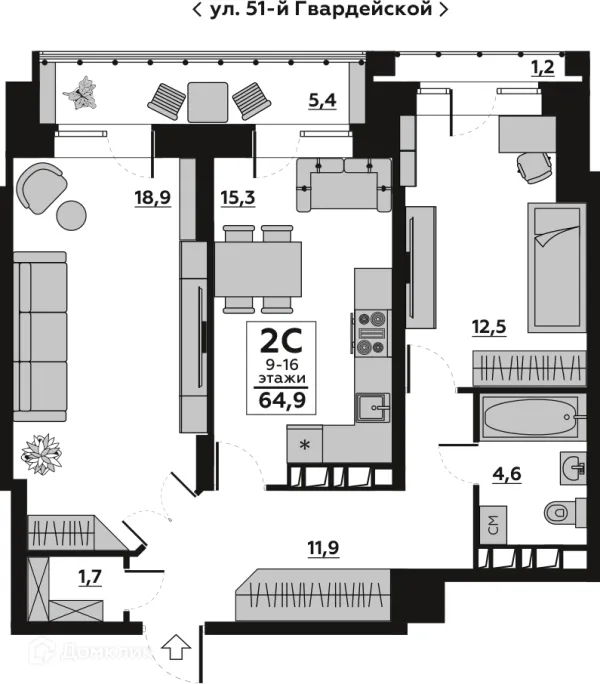 2 комн. квартира в Волгограде в ипотеку от 66 249 руб/месяц