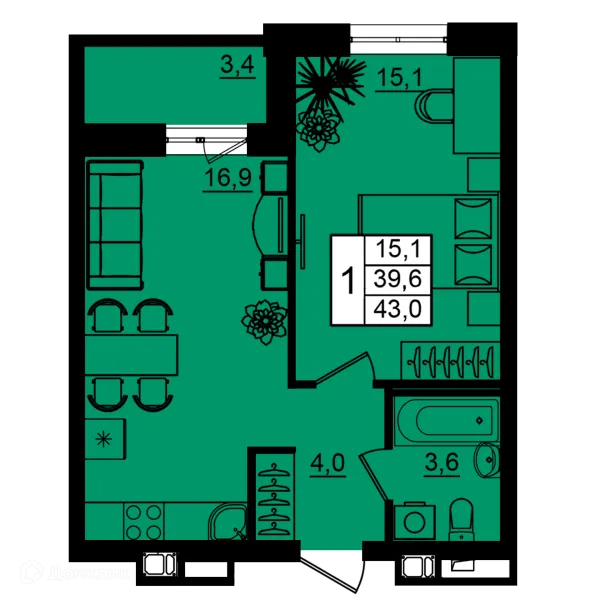 1 комн. квартира в Волгограде в ипотеку от 43 926 руб/месяц