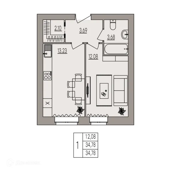 1 комн. квартира в Волгограде в ипотеку от 38 867 руб/месяц