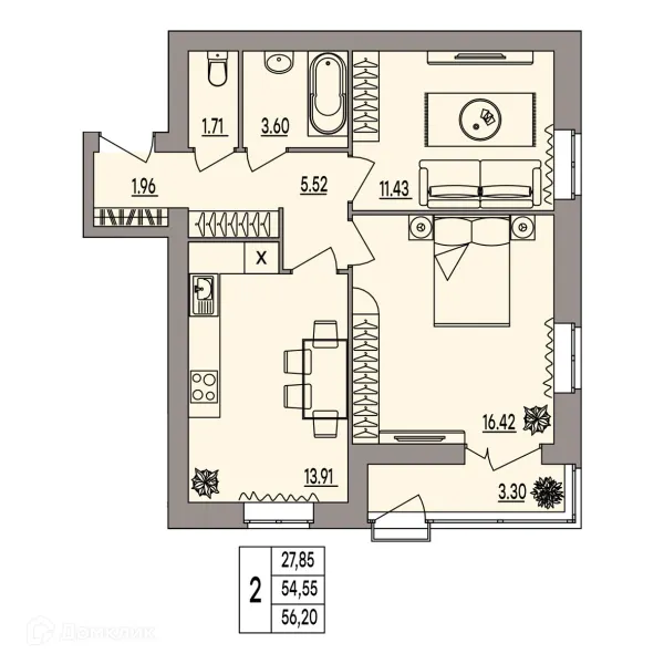 2 комн. квартира в Волгограде в ипотеку от 57 181 руб/месяц