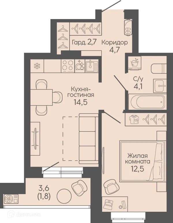 1 комн. квартира в Волгограде в ипотеку от 41 981 руб/месяц