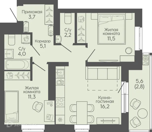 2 комн. квартира в Волгограде в ипотеку от 58 500 руб/месяц