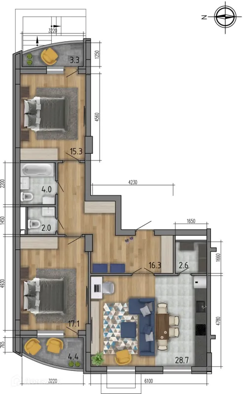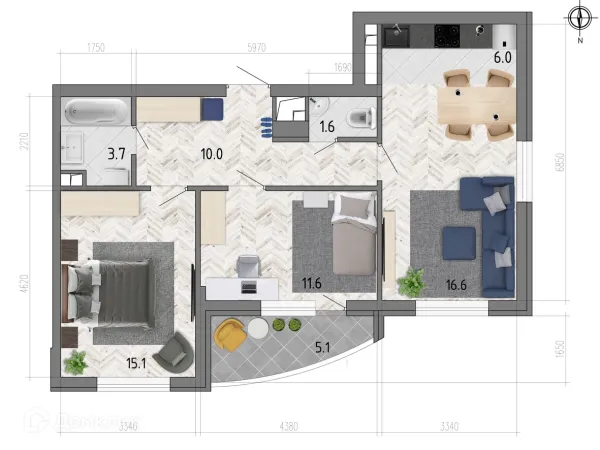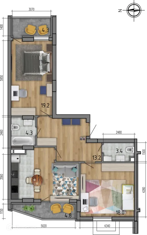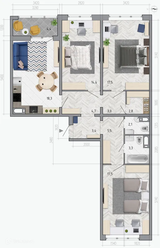 3 комн. квартира в Воронеже в ипотеку от 59 140 руб/месяц