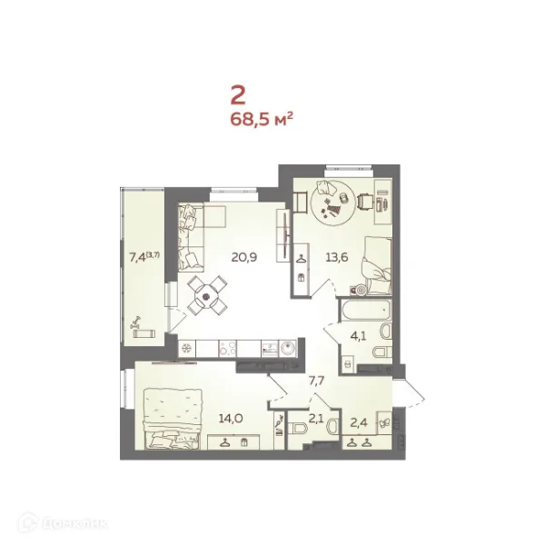 2 комн. квартира в Волгограде в ипотеку от 67 185 руб/месяц