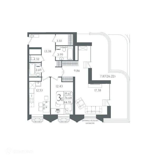 3 комн. квартира в Волгограде в ипотеку от 77 526 руб/месяц