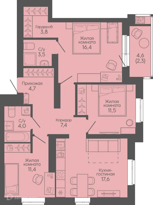3 комн. квартира в Волгограде в ипотеку от 67 082 руб/месяц
