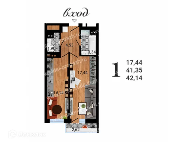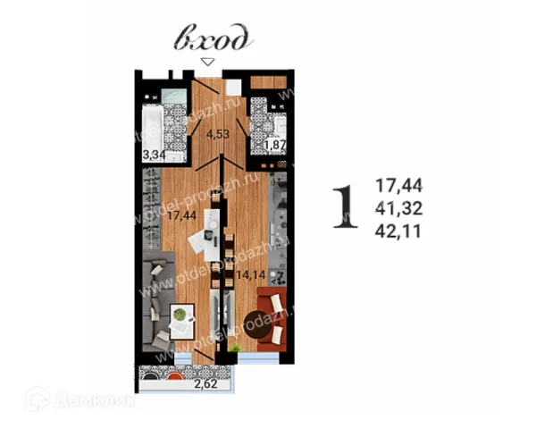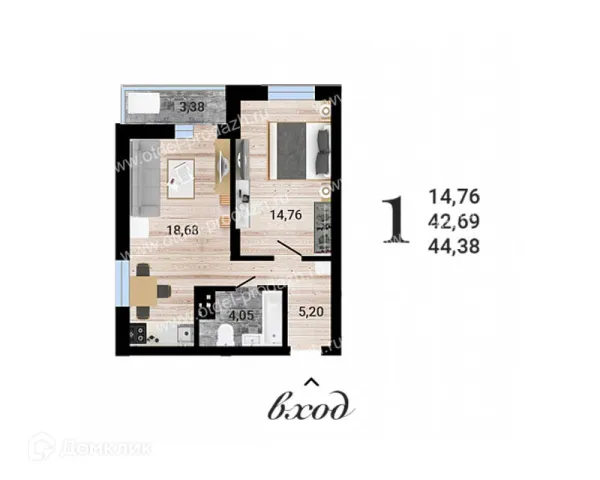 1 комн. квартира в Воронеже в ипотеку от 44 619 руб/месяц