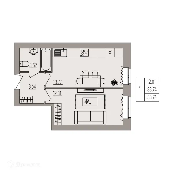 1 комн. квартира в Волгограде в ипотеку от 34 743 руб/месяц
