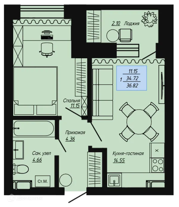 1 комн. квартира в Волгограде в ипотеку от 36 725 руб/месяц
