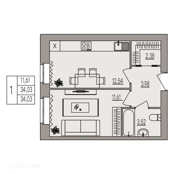 1 комн. квартира в Волгограде в ипотеку от 35 042 руб/месяц