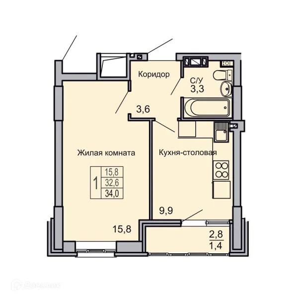 1 комн. квартира в Волгограде в ипотеку от 32 716 руб/месяц