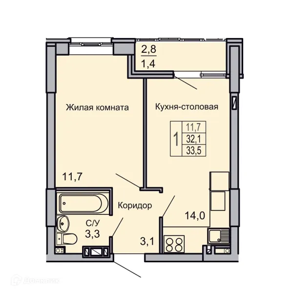 1 комн. квартира в Волгограде в ипотеку от 33 244 руб/месяц