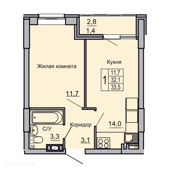 1 комн. квартира в Волгограде в ипотеку от 35 428 руб/месяц